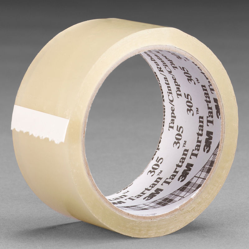 Tartan™ Box Sealing Tape 305 is a general purpose packing tape that is suitable for light weight applications specifically in the food and beverage industry. The polypropylene film backing is easy to handle and resists abrasion, moisture and scuffing. The consistent and reliable backing easily conforms around edges and on rough surfaces for a tight seal. This construction provides a good closure for lightweight boxes exposed to minimal distribution hazards. Tartan™ Box Sealing Tape 305 is a 1.8 mil (46 micron) general purpose polypropylene film tape with pressure sensitive acrylic adhesive that offers reliability in light weight and price sensitive applications. It is specifically designed to withstand cold temperature applications and for easy handling and smooth dispensing by hand, with manual dispensers or the 3M-Matic™ Case Sealers. It meets FDA guidelines for indirect food contact and resists aging, weathering and UV light where important.
